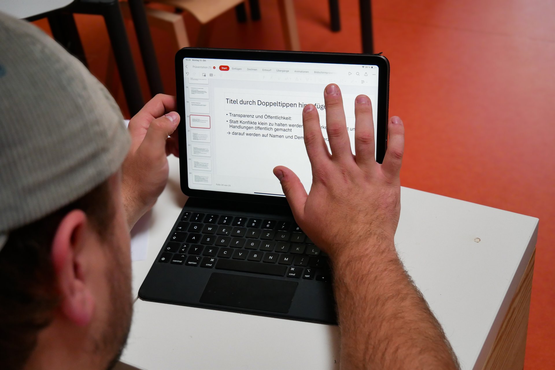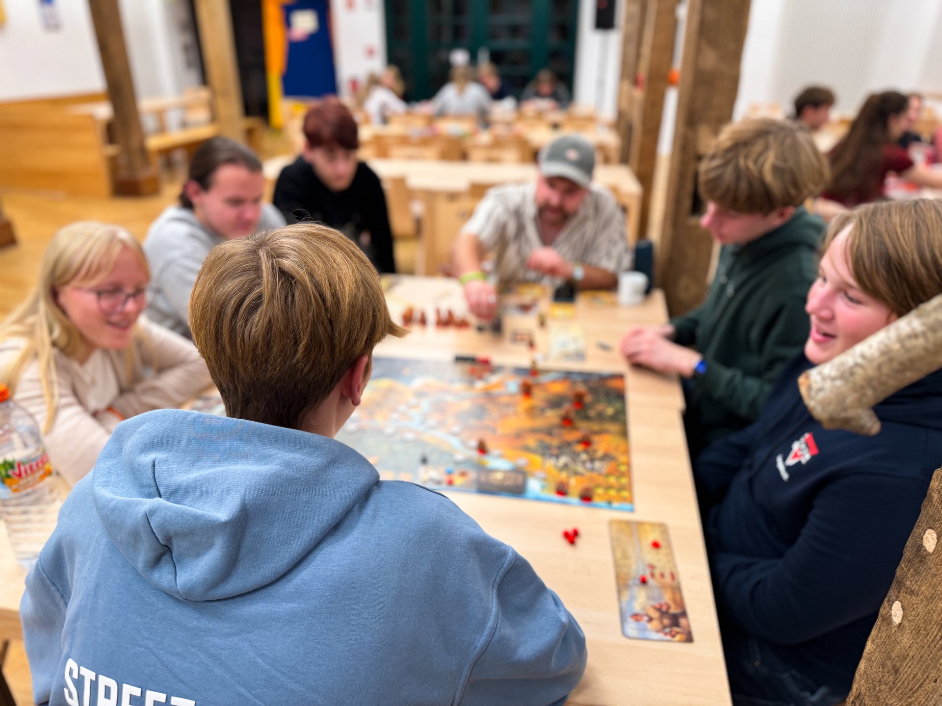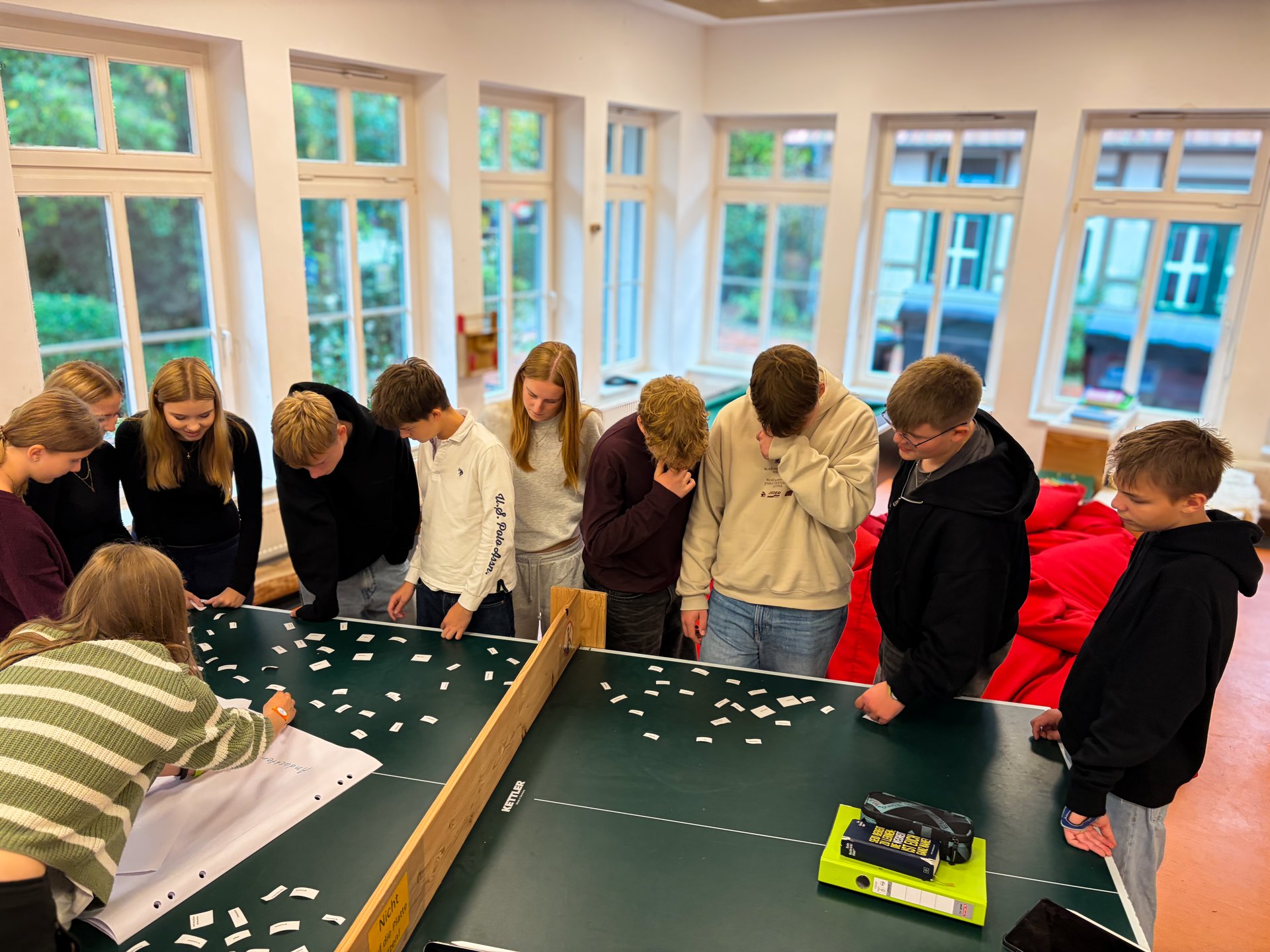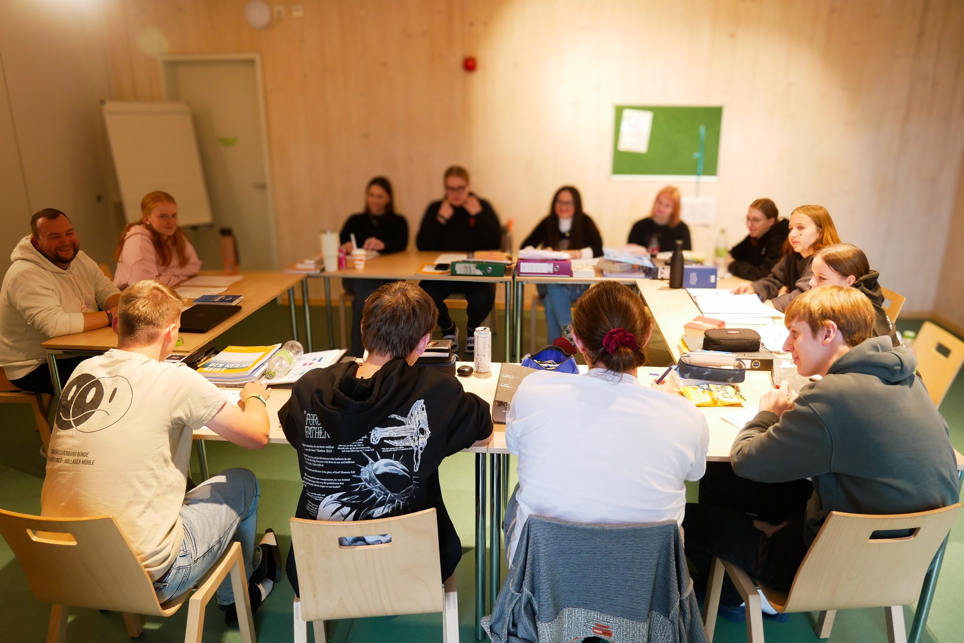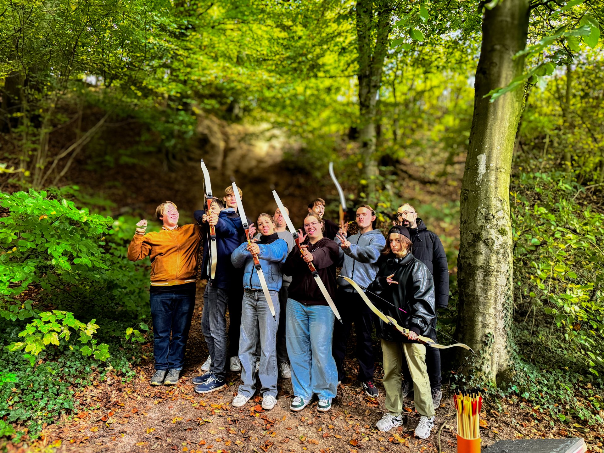 In den Kursen wurden in den 75-minütigen Seminareinheiten wieder viele spannende Themen behandelt – von Bibelkunde, Erlebnispädagogik, Gesprächsführung, Seelsorge und Spielpädagogik bis hin zu Rechtsfragen, Leitungsverantwortung und Gruppendynamik. Ganz neu im Programm war ein Seminar zu Künstlicher Intelligenz in der Kinder- und Jugendarbeit. Jeden Morgen begann mit einer gemeinsamen Bibelarbeit, die Raum für Glauben, Austausch und Inspiration bot. Neben dem inhaltlichen Programm gab es zahlreiche Aktionen, die das Gemeinschaftsgefühl stärkten. Abends sorgten Einzelaktionen wie Karaoke, BoardGames, kreative Workshops oder gemütliche Traumreisen für Ausgleich und Spaß. Der Spieleabend „Mord in Barkhausen“ im Stil von „Cluedo“ wurde zu einem Highlight der Woche – inklusive spannender Ermittlungen, falscher Fährten und jeder Menge biblischem Gelächter. Auch die beliebten Doppelaktionen gab es in Barkhausen. Am Mittwoch boten sie wieder eine gelungene Mischung aus Bewegung, Abenteuer und Gemeinschaft: Neben einer Fahrt nach Osnabrück standen Bogenschießen, Wandern und Kegeln zur Auswahl. Bei ostwestfälischem Herbstwetter genossen alle die Auszeit vom Kursalltag.